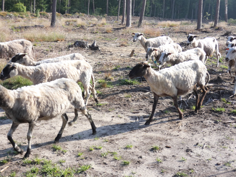 We verplaatsen de schapen steeds om zo het hele gebied onder handen, of eigenlijk poten, te nemen. De schapen zijn niet schuw en vinden het leuk als je bij ze komt kijken. Let wel op, er staat hoge stroom op de omheining. Dit is natuurlijk om de schapen binnen het afgezette gebied te houden, maar ook om er voor te zorgen dat er geen honden bij kunnen komen. Gelieve de schapen niet te voeren.